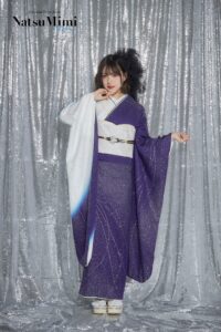 白の清らかさと紫の大人っぽさが合わさって、式典でも前撮りでもとっても映えるんです。