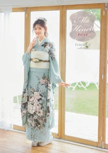 やわらかな光をまとうようなミントブルーの振袖が新登場しました。